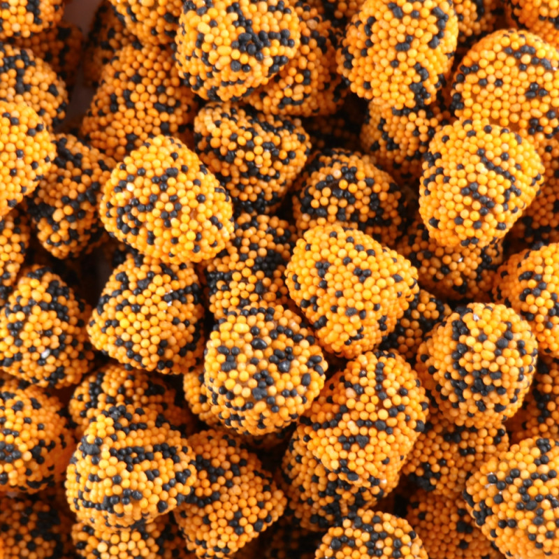 Socker, glukossirap, geleringsmedel (gelatin, pektin), stärkelse (majs), stärkelse (ris), surhetsreglerande medel (citronsyra (E330)), aromer, färgämnen (E153, E110*), ytbehandlingsmedel (bivax, karnaubavax). Innehåller azofärgämne. *Kan påverka barns aktivitet och koncentrationsförmåga negativt.