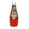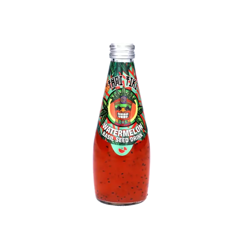 (SE) Vatten, 20 % vattenmelonjuice, 20 % hydratiserade basilikafrön, socker, sötningsmedel (E955), surhetsreglerande medel (E330), förtjockningsmedel (E415), geleringsmedel (E418), konserveringsmedel (E202), arom, färger (*E129, E150d (SULFIT)). *Färgämnet E129 kan ha en negativ effekt på barns aktivitet och uppmärksamhet.